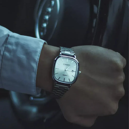 It has that classic stainless steel vibe but with a modern twist. Fits perfectly on the wrist and the luminous hands are a nice bonus. Great experience with Vizenz so far.